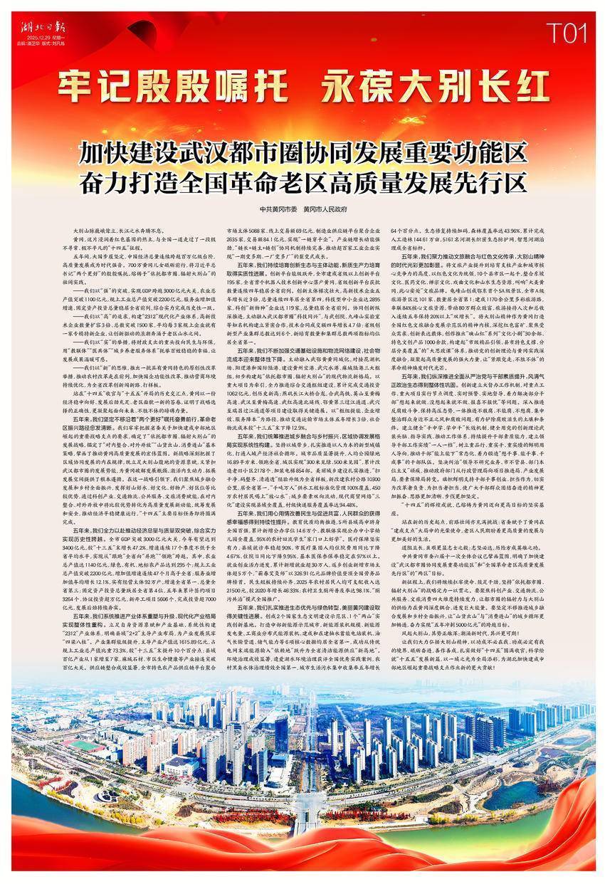 2025年12月29日,湖北日报推出《牢记殷殷嘱托 永葆大别长红》黄冈特刊,全景式展现黄冈奋斗足迹与全新征程,敬请关注。