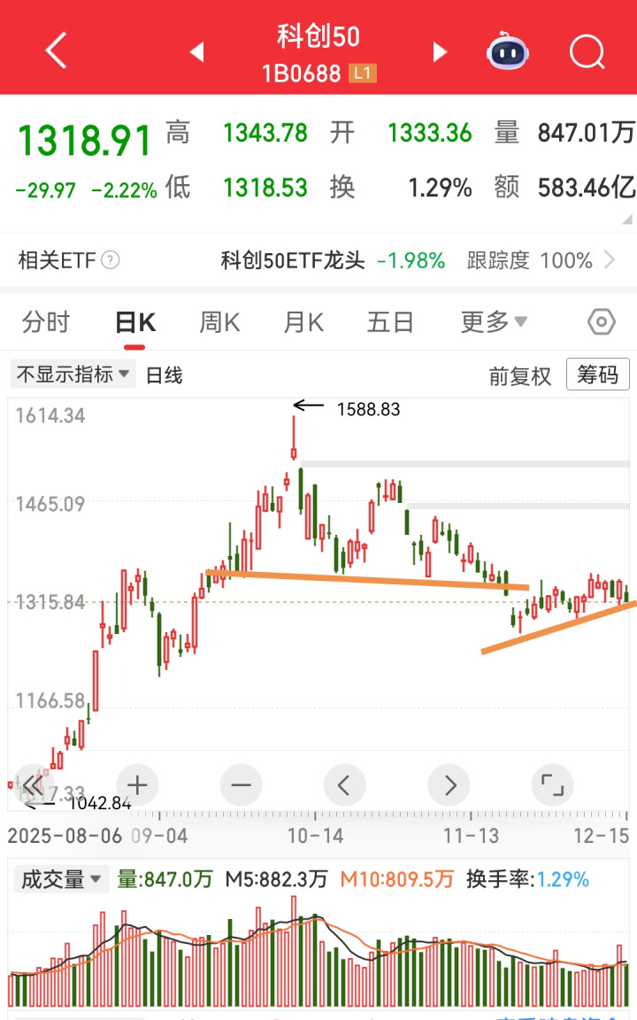 如果再加上科创50,这个形态就更恐怖了,头部出现了,破位后的熊旗也基本破位了,一旦破位,短期内,这些个股不会走好。
