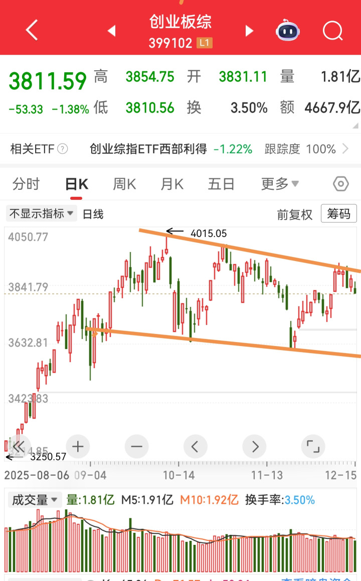 先看上证,这个阶段已经不适合在场内做多了,除非你有对冲的手段。形态上很明显,下跌趋势已经快要形成了。